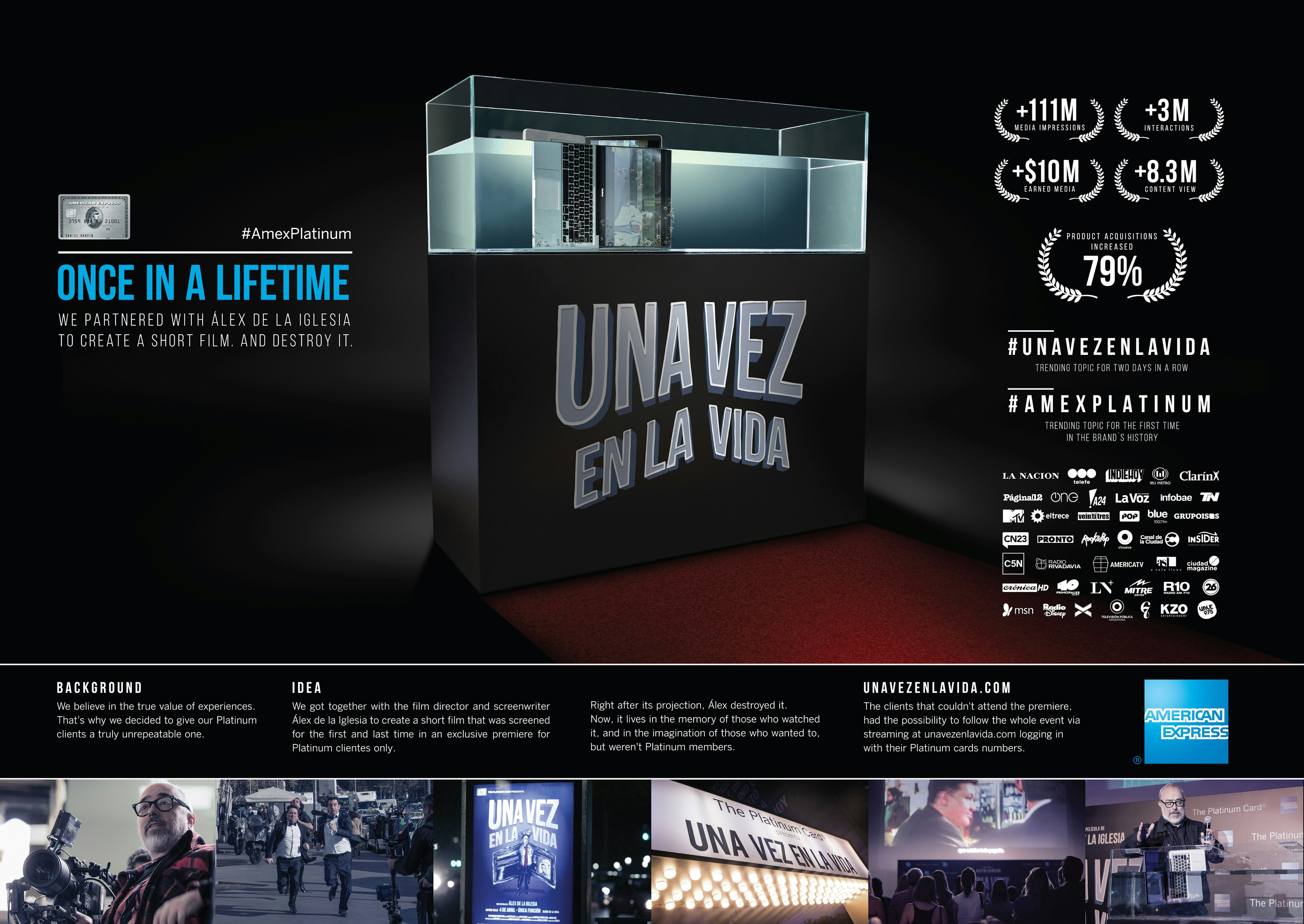 Llamamos a Álex de la Iglesia y le pedimos que hiciese un corto bajo el concepto 'Una vez en la vida'. Cuando lo estrenó, le pedimos que lo destruyese. Solo 100 personas pudieron verlo. Así de simple. Así de exclusivo. Así de AMEX.
